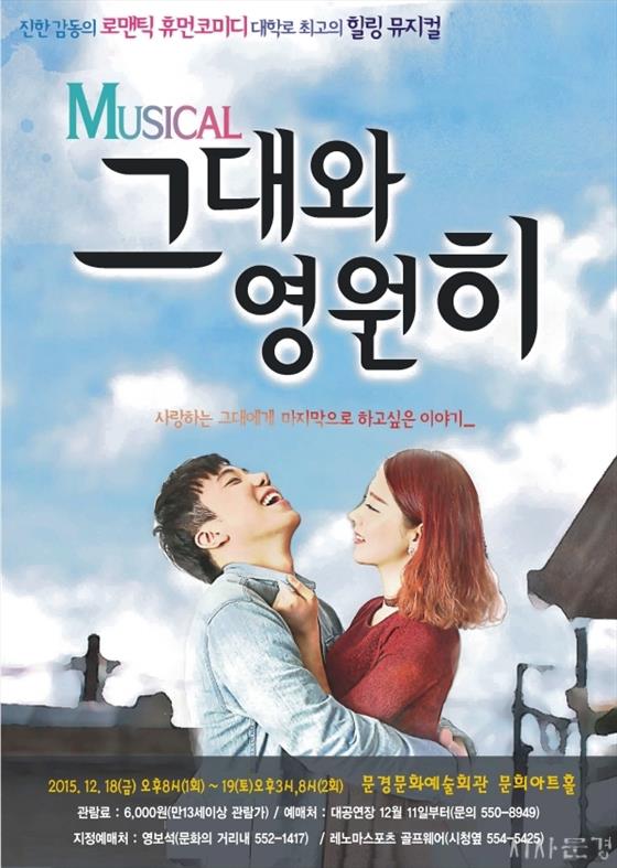¹ÂÁöÄà ¡®±×´ë¿Í ¿µ¿øÈ÷¡¯´Â ½Ã¹Îµé¿¡°Ô ¿ôÀ½°ú ÀÜÀÜÇÑ °¨µ¿À» ÁÖ´Â °ø¿¬À¸·Î½á 12¿ù 11ÀÏ¿ÀÀü 8½Ã 30ºÐºÎÅÍ ¹®È¿¹¼úȸ°ü ´ë°ø¿¬Àå¿¡¼ ¿¹¸ÅÇϸç(¸¸13¼¼ ÀÌ»ó °ü¶÷°¡) ÀÔÀå·á´Â 6,000¿øÀÌ´Ù.(°ø¿¬¹®ÀÇ 054-550-8949)