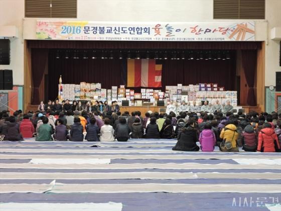 ¹®°æ½Ã ºÒ±³½Åµµ¿¬ÇÕȸ ÈÇÕ À·³îÀÌ ÇѸ¶´ç Çà»ç°¡ 2¿ù 27ÀÏ ¹®°æ½Ã ½Ç³»Ã¼À°°ü¿¡¼ °¢ »çÂû ½ÅµµÈ¸¿Í ºÒ±³´ëÇÐ µ¿¹® µî 500¿©¸íÀÇ ºÒÀÚµéÀÌ Âü¼®ÇÑ °¡¿îµ¥ ½ÃÁ¾Àϰü ȱâ¾Ö¾ÖÇÑ ºÐÀ§±â ¼Ó¿¡¼ ºÒÀÚ°£ ÈÇÕ°ú ¿ìÀǸ¦ ´ÙÁ³´Ù.