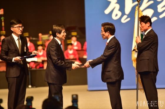 ¹®°æ½Ã´Â 10¿ù 9ÀÏ Á¦570µ¹ Çѱ۳¯ °æÃà½Ä¿¡¼ Áö¹æÀÚÄ¡´Üü·Î´Â óÀ½À¸·Î ¡®ÇÑ±Û ¹ßÀü À¯°ø, ±¹¹«ÃѸ® ǥ⡯À» ¹Þ¾Ò´Ù.