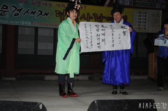 À̳¯ ½ÃÁ¦ÀÎ ¡®¡¯»õÀç±æ¡°·Î 3Çà½Ã Áþ±â¿¡¼´Â °áÈ¥±â³äÀÏÀ» ¸Â¾Æ ´ëÀü¿¡¼ Âü°¡ÇÑ ±èºû³ª¶ó¾¾°¡ Àå¿øÀ» Â÷ÁöÇÏ¿© ¾î»çȸ¦ ²ÈÀº °ü¸ð¿Í °üº¹À» ÀÔ°í ÇöÇѱ٠¹®°æ¹®È¿øÀå·ÎºÎÅÍ ±³Áö¿Í ºÎ»óÀ¸·Î µµÀڱ⸦ ¼ö»óÇÏ´Â °æ»ç¸¦ ´©·È´Ù.