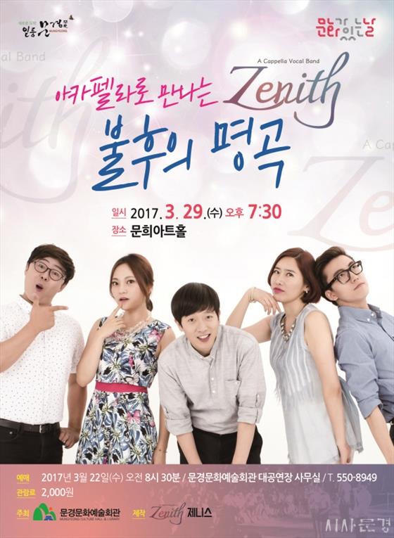 '¿¡¸¯Å´', '¾Ö³ª', '±è¹Î±¸', '±è¼¼Èñ', 'Ȳ´ëȯ'À¸·Î ±¸¼º µÈ È¥¼º 5ÀÎÁ¶ Á¦´Ï½º(Zenith)´Â 2008³â¿¡ °á¼º µÈ ÆËÀçÁî '¾ÆÄ«Æç¶ó ±×·ì'À¸·Î 2012³â Á¦´Ï½º ¹Ì´Ï¾Ù¹ü <ÀÚÀÌ¾ðÆ® Æ®¸®>·Î °ø½Ä µ¥ºß ÇÏ¿´°í, <±âÂ÷Ÿ°í>, <º¸ÄøÅÁ÷>À¸·Î »ç¶ûÀ» ¹Þ°í ÀÖ´Ù.