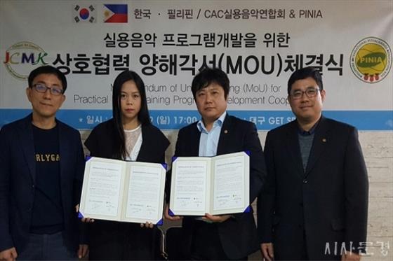 CAC½Ç¿ëÀ½¾Ç ¿¬ÇÕȸ(ȸÀå ±è±¤Ãá)´Â "Áö³ 4¿ù 9ÀÏ ´ë±¸½Ã ³²±¸ ´ë¸íµ¿ '°Ù ½ºÆäÀ̽º'¿¡¼ PINIA(Çʸ®Çɱ¹Á¦±³·ùÇùȸ. ´ëÇ¥ Á¨ JEREZA M. NERI)¿Í ¾ç ±â°üÀÇ ½Ç¿ëÀ½¾Ç ¹× K-POPÀ» ºñ·ÔÇÑ ´ëÁßÀ½¾Ç ¹ßÀü ÇÁ·Î±×·¥ °³¹ßÀ» À§ÇÑ ¾çÇØ°¢¼(MOU)¸¦ ü°áÇß´Ù."¶ó°í ÀüÇß´Ù.