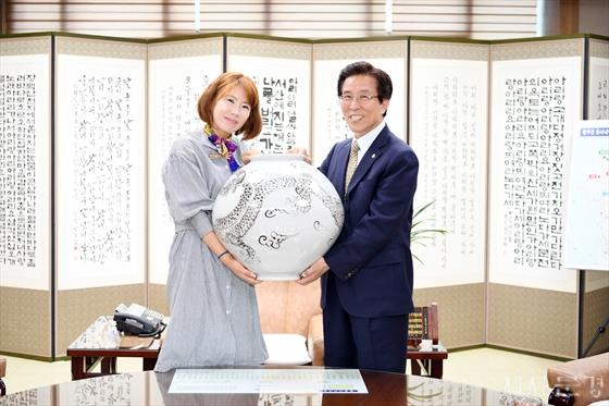 °æÇ°À¸·Î ÁÖ¾îÁö´Â ´ÞÇ׾Ƹ®´Â 8´ë° ÀüÅë µµÀڱ⸦ ºú´Â ¿µ³²¿ä ±è°æ½Ä µµ¿¹°¡ÀÇ ÀÛǰÀ¸·Î ³Êºñ 50§¯, ³ôÀÌ 50§¯ Å©±âÀÇ Ã¶È¿ë¹® ¹éÀÚ´Ù. À̿ܿ¡µµ ¹®°æÀüÅëµµ¿¹ÀÛ°¡µéÀÌ 20Á¡ÀÇ °æÇ°À» ÇùÂùÇØ Ãß÷À» ÅëÇØ ÁõÁ¤Çß´Ù.
