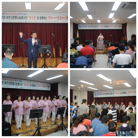 ÀÌ »ç¾÷Àº ¹®ÈüÀ°°ü±¤ºÎ°¡ ÈÄ¿øÇÏ´Â ±¹ºñº¸Á¶»ç¾÷À¸·Î, ¹®°æ¹®È¿ø¿¡¼ 35¸íÀÇ ¾î¸£½Å¹®È³ª´®ºÀ»ç´ÜÀ» ¸ðÁý, ã¾Æ°¡´Â °ø¿¬À» ÇÏ´Â °ÍÀ¸·Î 5¿ùºÎÅÍ 10¿ù±îÁö ¸Å¿ù ¸¶Áö¸· ¼ö¿äÀÏ¿¡ ¼Ò¿ÜµÈ °èÃþÀ» ã¾Æ Áñ°Å¿î ½Ã°£À» °¡Áö°í À̵éÀ» À§·ÎÇϸç Èï°Ü¿î ¾î¿ï¸²ÀÇ ÀåÀ» ÆîÄ¡´Â °ÍÀÌ´Ù.