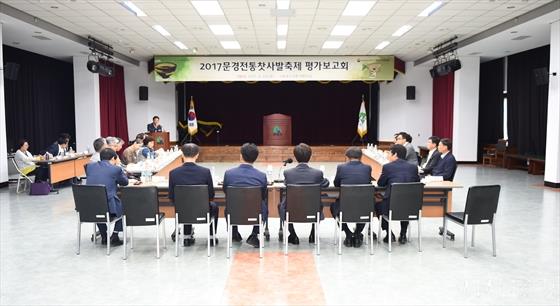 Áö³ 5¿ù 7ÀÏ ´ë´Ü¿øÀÇ ¸·À» ³»¸° 2017 ¹®°æÀüÅëÂþ»ç¹ßÃàÁ¦¿¡ ´ëÇÑ Æò°¡º¸°íȸ°¡ Áö³ 6¿ù 23ÀÏ ¹®°æ½Ãû ´ëȸÀǽǿ¡¼ °íÀ±È¯ ½ÃÀå°ú ±è¾ïÁÖ ÃßÁøÀ§¿øÀåÀ» ºñ·ÔÇÑ ÃßÁøÀ§¿ø µî 30¿©¸íÀÌ Âü¼®ÇÑ °¡¿îµ¥ °³ÃֵƴÙ.