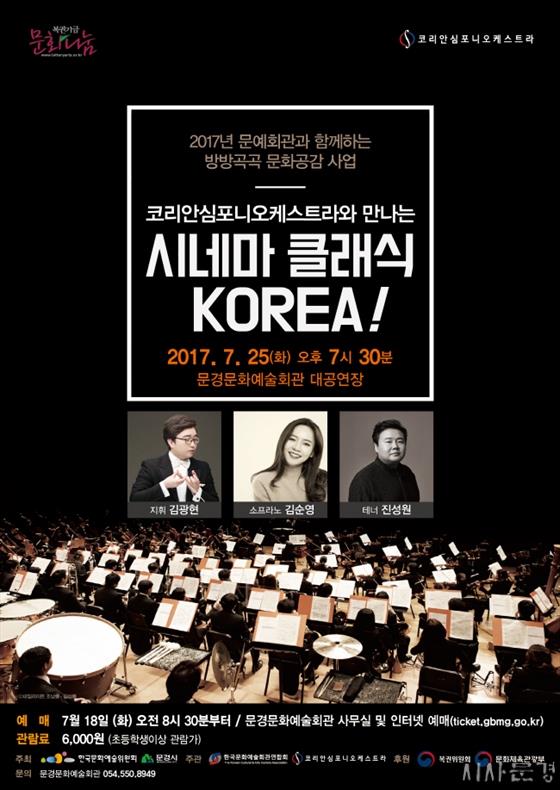 2017³â ¹æ¹æ°î°î ¹®È°ø°¨ »ç¾÷ÀÇ ÀÏȯÀ¸·Î ¹®°æ¹®È¿¹¼úȸ°ü°ú Çѱ¹¹®È¿¹¼úȸ°ü¿¬ÇÕȸ°¡ ÁÖÃÖ-ÁÖ°üÇÏ´Â ÄÚ¸®¾È½ÉÆ÷´Ï¿ÀÄɽºÆ®¶ó¿Í ¸¸³ª´Â ¡®½Ã³×¸¶ Ŭ·¡½Ä KOREA!¡¯ °ø¿¬ÀÌ ¿À´Â 7¿ù 25ÀÏ ¹®°æ¹®È¿¹¼úȸ°ü ´ë°ø¿¬Àå¿¡¼ ¿¸°´Ù.