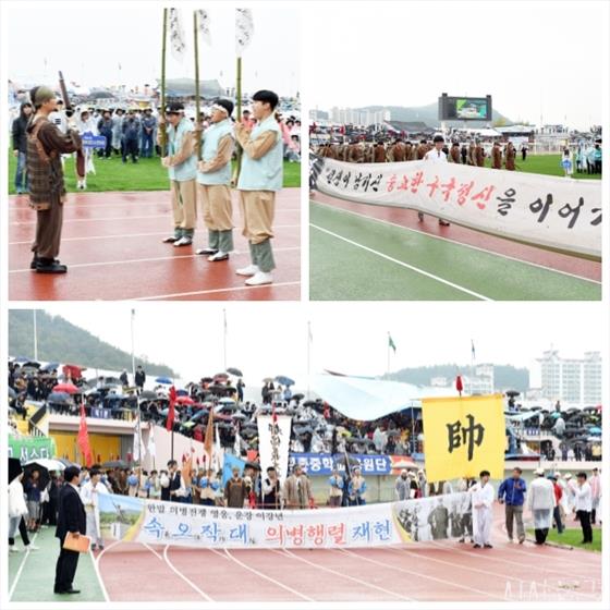 À̳¯ ±¸ÇѸ» ÀǺ´À¸·Î ºÐÇÑ 130¿©¸íÀÇ ¹®Ã¢°íµîÇб³ 2Çгâ»ýµéÀº ¿ÀÀü 10½ÃºÎÅÍ °ÅÇàµÈ ÀÔÀå½Ä¿¡¼ ¿¾ ÀǺ´µéÀÇ º¹ÀåÀ» Âø¿ëÇÏ°í ±ê¹ß, ¹«±â µîÀ» µé¾î 110¿©³âÀü ¼Ó¿ÀÀÛ´ëµµ ¼ÓÀÇ ¸ð½À ±×´ë·Î ÇàÁøÇÏ¸é¼ ¿ì··Âù ±¸È£¿Í ÇÔ²² ÀǺ´ÀÇ ³ë·¡ ÇÕâ°ú ÀüÅõÀå¸é À翬 µîÀÇ ÆÛÆ÷¸Õ½º µîÀ» ÆîÃÄ ½ºÅĵ带 °¡µæ ¸Þ¿î ½Ã¹ÎµéÀÇ ¿·ÄÇÑ È¯È£¸¦ ¹Þ¾Ò´Ù.