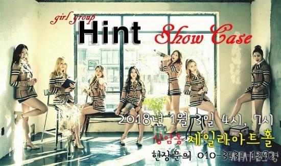7¸í Àç°£µÕÀ̰¡ ¹¶Ä£ °É±×·ì 'ÈùÆ®(Hint)'°¡ 1¿ù 3ÀÏ Á¦ÀÏ¶ó¾ÆÆ®È¦(»ó¾Ïµ¿ À§Ä¡)¿¡¼ ¼îÄÉÀ̽º °³ÃÖ¿¡ À̾î 1¿ù 5ÀÏ ±Ý¿äÀÏ ¹ÂÁ÷¹ðÅ© Ã⿬ È®Á¤À» ¹Þ¾Ò´Ù.