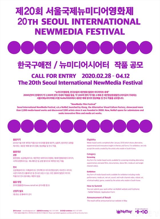 Á¦20ȸ ¼¿ï±¹Á¦´º¹Ìµð¾î¿µÈÁ¦´Â ¿ÃÇØµµ 8¿ù¿¡ °³ÃֵǸç, À̹ø ÀÛǰ°ø¸ð ºÐ¾ß´Â Çѱ¹±¸¾ÖÀü°ú ´º¹Ìµð¾î½Ã¾îÅÍ ºÎ¹®À¸·Î ´ë¾ÈÀû, ½ÇÇèÀû, âÀÇÀûÀΠǥÇöÀ» Á¦½ÃÇÏ´Â »õ·Î¿î ¸Åü Çü½ÄÀÇ ¿µÈ, ¿µ»ó¿¹¼ú ¹× Àü½Ã ÀÛǰ µîÀ» ´ë»óÀ¸·Î Æø³Ð°Ô ÀÛǰ Á¢¼ö¸¦ ¹Þ´Â´Ù. Çѱ¹±¸¾ÖÀü°ú ´º¹Ìµð¾î½Ã¾îÅÍ º»¼±¿¡ ÁøÃâÇÑ ÀÛǰµéÀº ½É»ç¸¦ °ÅÃÄ ¼ö»óÀÛÀ¸·Î ¼±Á¤µÇ¸é ÃÑ »ó±Ý 2õ¸¸¿øÀ» ¼ö¿©¹Þ´Â´Ù. (Çѱ¹±¸¾ÖÀü ÃÖ°í±¸¾Ö»ó, ´º¹Ìµð¾î½Ã¾îÅÍ»ó, Çѱ¹´ë¾ÈYoungûþ»ó, °ü°´±¸¾Ö»ó(»ó¿µ/Àü½Ã) µî)