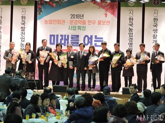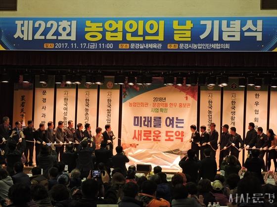 ¹®°æ½Ã(½ÃÀå °íÀ±È¯)´Â 11¿ù 17ÀÏ ½Ç³»Ã¼À°°ü¿¡¼ ³ó¾÷ÀÎ µî 1õ¿©¸íÀÌ Âü¼®ÇÑ °¡¿îµ¥ 2017³â ¹®°æ½Ã ³ó¾÷ÀÎÀÇ ³¯ ±â³ä½ÄÀ» °³ÃÖÇÏ¿© ÇÑ ÇØ µ¿¾È ³ó¾÷ÇöÀå¿¡¼ °í»ýÇÑ ³ó¾÷ÀεéÀÇ ³ë°í¸¦ À§·ÎÇϰí, ¹®°æ³ó¾÷ÀÌ »õ·Ó°Ô Ãâ¹ßÇÏ´Â Èñ¸ÁÀÇ ÀåÀ» ¸¶·ÃÇß´Ù.
