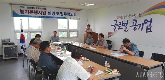 Çѱ¹³ó¾îÃ̰ø»ç ¹®°æÁö»ç(Áö»çÀå ¾È¿µ¿ë)´Â 7¿ù 17ÀÏ Áö»çȸÀǽǿ¡¼ Çѱ¹½ÒÀü¾÷³ó ¹®°æ½Ã¿¬ÇÕȸ ÀÓ¿øÁø°ú °£´ãȸ¸¦ °®°í ¿¬·Éº°¡¤±Ô¸ðº°¡¤°æ·Âº° µî ¸ÂÃãÇü ³óÁöÀºÇà Áö¿ø»ç¾÷¿¡ ´ëÇÑ ÀǰßÀ» ±³È¯Çß´Ù.