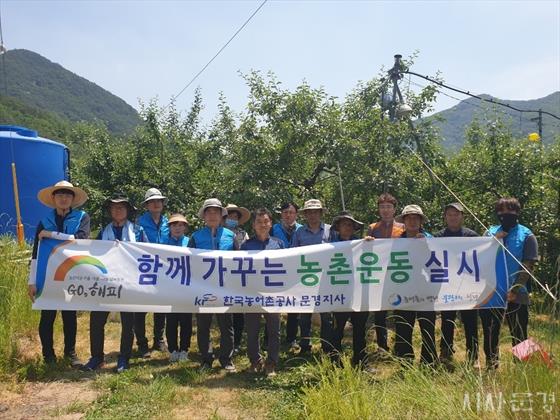 Çѱ¹³ó¾îÃ̰ø»ç ¹®°æÁö»ç(Áö»çÀå ¾È¿µ¿ë)´Â Áö³ 6¿ù 9ÀÏ ¹®°æ½Ã ¹®°æÀ¾ °ü³» °ú¼ö³ó°¡¸¦ ¹æ¹®ÇÏ¿© ³óÃÌ Àϼյ½±â ºÀ»çȰµ¿À» ½Ç½ÃÇß´Ù.