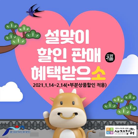 ¹®°æ°ü±¤ÁøÈï°ø´Ü(ÀÌ»çÀå ±Ý¿Á°æ) ³óƯ»ê¹°Á÷ÆÇÀåÀº ¹®°æ»õÀçÁ÷ÆÇÀå, Áߺγ»·ú°í¼Óµµ·Î ¹®°æ »óÇÏÇ༱ ÈÞ°Ô¼ÒÁ÷ÆÇÀå°ú ÀÎÅͳݼîÇθô ¡®¹®°æ»ç¶û»õÀçÀåÅÍ¡¯(www.saejaemall.com)¿¡¼ ½ÅÃà³â ¼³³¯À» ¸Â¾Æ ¿À´Â 2¿ù 14ÀϱîÁö ¡®Æ¯º° ÇÒÀÎÆÇ¸ÅÇà»ç¡¯¸¦ ½Ç½ÃÇÑ´Ù.