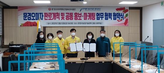 ¹®°æ½Ã ³ó¾÷±â¼ú¼¾ÅÍ¿¡¼ ¿î¿µÁßÀÎ ¹®°æ¿À¹ÌÀÚÇâÅä»ê¾÷À°¼º»ç¾÷´Ü(´ÜÀå ÀÌÈ«¿ë)°ú ¹®°æ°ü±¤ÁøÈï°ø´Ü(ÀÌ»çÀå ±Ý¿Á°æ)Àº ¹®°æ¿À¹ÌÀÚÀÇ È¿À²ÀûÀÎ È«º¸¸¶ÄÉÆÃÀ» À§ÇØ °øµ¿ È«º¸ ¸¶ÄÉÆÃ¿¡ ´ëÇÑ Çù¾à½ÄÀ» Áö³ 3¿ù 12ÀÏ Ã¼°áÇÏ°í º»°ÝÀûÀÎ Çù¾÷À» ÃßÁøÅ°·Î Çß´Ù.