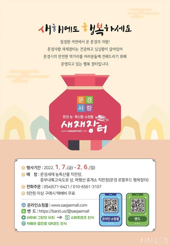 ¹®°æ°ü±¤ÁøÈï°ø´Ü ³óƯ»ê¹°Á÷ÆÇÀåÀº ¹®°æ»õÀçÁ÷ÆÇÀå, Áߺγ»·ú°í¼Óµµ·Î ¹®°æ »ó¡¤ÇÏÇ༱ ÈÞ°Ô¼ÒÁ÷ÆÇÀå°ú ÀÎÅͳݼîÇθô ¹®°æ»ç¶û»õÀçÀåÅÍ(http://www.saejaemall.com)¿¡¼ 2¿ù 6ÀϱîÁö ¡®¼³¸ÂÀÌ Æ¯º° ÇÒÀÎÆÇ¸Å Çà»ç¡¯¸¦ ½Ç½ÃÇÑ´Ù°í ¹àÇû´Ù.