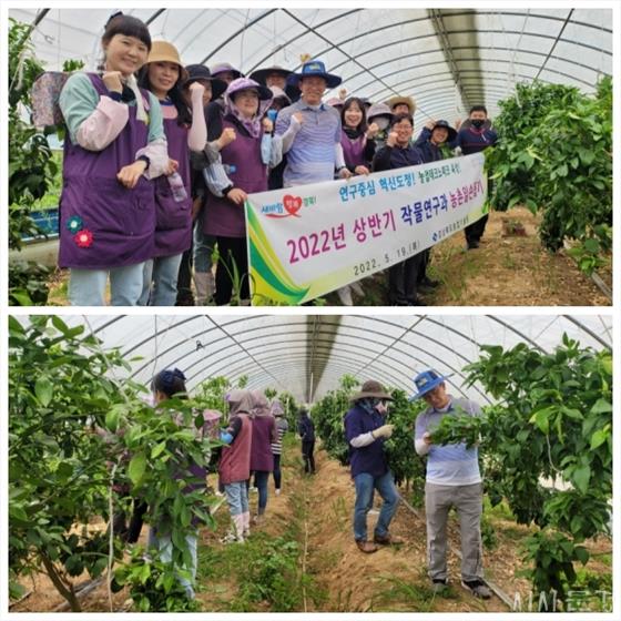 °æºÏ³ó¾÷±â¼ú¿ø(¿øÀå ½Å¿ë½À) ÀÛ¹°¿¬±¸°ú Á÷¿øµéÀº Áö³ 5¿ù 19ÀÏ ³ó¹ø±â¸¦ ¸Â¾Æ °í·ÉÈ¿Í Äڷγª19 ¿©ÆÄ·Î ÀηÂÈ®º¸¿¡ ¾î·Á¿òÀ» °Þ°í Àִ ĥ°î ±â»ê¸é Ȳ±ÝÇâ Àç¹è³ó°¡¿¡¼ Àû°úÀÛ¾÷(¿¸Å¼Ô±â)À» µµ¿Ô´Ù.