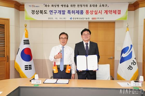 °æ»óºÏµµ ³ó¾÷±â¼ú¿ø(¿øÀå ½Å¿ë½À)Àº Áö³ 10¿ù 19ÀÏ °ú¼ö¿¡ Å« ÇÇÇØ¸¦ ÁÖ´Â È»óº´ °¨¿° ¿¹¹æÀ» À§ÇØ °³¹ßÇÑ ÀüÁ¤°¡À§ÀÇ ÈÞ´ë¿ë ¼Òµ¶±¸¸¦ ³óÀÚÀç Àü¹® »ý»ê±â¾÷ÀÎ ÀÌÁö¿¡ Åë»ó½Ç½Ã °è¾àÀ» ü°áÇÏ°í »óÈ£ Çù·ÂÇϱâ·Î Çß´Ù.