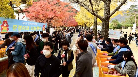 ¿ÃÇØ ÃàÁ¦ ±â°£ µ¿¾È 38¸¸ ¸íÀÌ ¹®°æ»õÀçµµ¸³°ø¿ø°ú ¹®°æ»ç°úÃàÁ¦ÀåÀ» ¹æ¹®ÇØ ¾à 200Åæ, 19¾ï¿øÀÇ »ç°ú°¡ ÆÇ¸ÅµÆ´Ù. ÀÌ´Â Äڷγª ÀÌÀüÀÎ 2019³âº¸´Ù 3¸¸ ¸íÀÌ ´õ ¹æ¹®Çß°í ÆÇ¸Å¾×Àº 4¾ï¿øÀÌ ´õ ´Ã¾î³ª ÈïÇà¿¡ ¼º°øÇß´Ù.