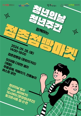 (Á¡ÃÌÁ¡»§¸¶ÄÏ)¹®°æ½Ã´Â ¹®°æ½Ãµµ½ÃÀç»ýÁö¿ø¼¾ÅÍ¿Í ¿À´Â 9¿ù 28ÀÏ Åä¿äÀÏ ¿ÀÈÄ 2½Ã, Á¡ÃÌ ¹®È­ÀÇ °Å¸®¿¡¼­ ¡®ÇϹݱâ Á¡ÃÌÁ¡»§¸¶ÄÏ¡¯À» °³ÀåÇÑ´Ù... [Á¤Ä¡/°æÁ¦] ÀüÀç¼ö 2024-09-26 11:00