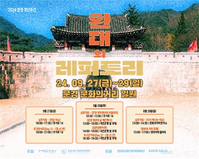 (±¤ºÎÀÇ °Å¸® ÃàÁ¦)¹®°æ½Ã´Â ¹®°æ½Ãµµ½ÃÀç»ý¼¾ÅÍ¿Í ¿À´Â 9¿ù 29ÀÏ ¿ÀÈÄ 2½Ã, ±¤ºÎÀÇ °Å¸®(¿Àº¹Âð»§~Äڻ縶Ʈ Á¡ÃÌÁ¡)¿¡¼­ 2024 ±¤ºÎÀÇ ... [¹®È­] ÀüÈñÁø 2024-09-25 17:00