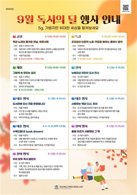 (9¿ù µ¶¼­ÀÇ ´Þ)°æ»óºÏµµ±³À°Ã» Á¡Ã̵µ¼­°ü(°üÀå ¹Ú»ó¼±)Àº 9¿ù µ¶¼­ÀÇ ´ÞÀ» ¸Â¾Æ Áö¿ª ÁֹεéÀÇ µ¶¼­ »ýȰÀ» Ȱ¼ºÈ­Çϱâ À§ÇØ ¡®5g, °¡º±... [±³À°] ȲÇö¼÷ 2024-08-29 13:00
