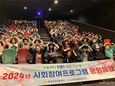 (¾î¸£½Å ¿µÈ­°ü¶÷)¹®°æÁö¿ªÀÚȰ¼¾ÅÍ(¼¾ÅÍÀå À±Èñ¼÷)´Â ³ëÀθÂÃãµ¹º½¼­ºñ½º¸¦ ÀÌ¿ëÇÏ´Â 65¼¼ ÀÌ»óÀÇ ¾î¸£½Åµé¿¡°Ô »çȸÂü¿©ÇÁ·Î±×·¥ ¡®¹®È­Ã¼Ç衯ÀÇ ... [¹®È­] ÀüÈñÁø 2024-04-28 ¿ÀÀü 5:06:34