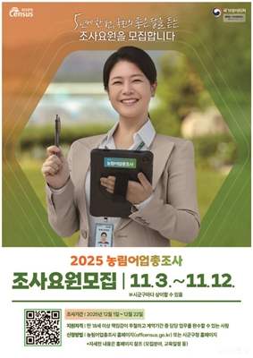 (³ó¸²¾î¾÷ÃÑÁ¶»ç Á¶»ç¿ä¿ø ¸ðÁý)¹®°æ½Ã´Â '2025 ³ó¸²¾î¾÷ÃÑÁ¶»ç'¸¦ À§ÇØ 11¿ù 3ÀϺÎÅÍ 12ÀϱîÁö Á¶»ç°ü¸®¿ä¿ø 12¸í, Á¶»ç¿ø 80¸í µî... [³ó¾÷] ÀüÅÂÁø 2025-10-31 15:00