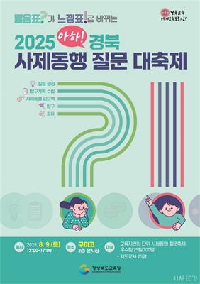 (»çÁ¦µ¿Çà Áú¹® ´ëÃàÁ¦)°æºÏ±³À°Ã»(±³À°°¨ ÀÓÁ¾½Ä)Àº ¿À´Â 8¿ù 9ÀÏ ±¸¹Ì½Ã¿¡ ÀÖ´Â ±¸¹ÌÄÚ 2Ãþ Àü½ÃÀå¿¡¼­ ¡®2025 ¾ÆÇÏ! °æºÏ »çÁ¦µ¿Çà ... [±³À°] ÀüÈñÁø 2025-08-06 17:00