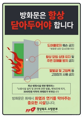 (¹æÈ¹®´Ý±â)¹®°æ¼Ò¹æ¼(¼Àå ¹Îº´°ü)´Â ÈÀç ¾ÈÀüÀ» °ÈÇϰí ÀÎ¸í ¹× Àç»êÇÇÇØ¸¦ ÃÖ¼ÒÈÇϱâ À§ÇÑ ¡®¹æÈ¹® ´Ý±â¡¯ È«º¸¿¡ ³ª¼¹´Ù.¹æÈ¹®Àº È...